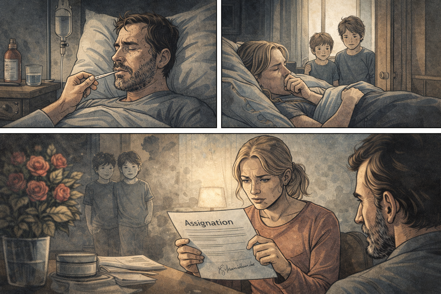 Dans le même temps, son épouse tombe également malade, elle aussi victime de cette spirale d’épuisement.