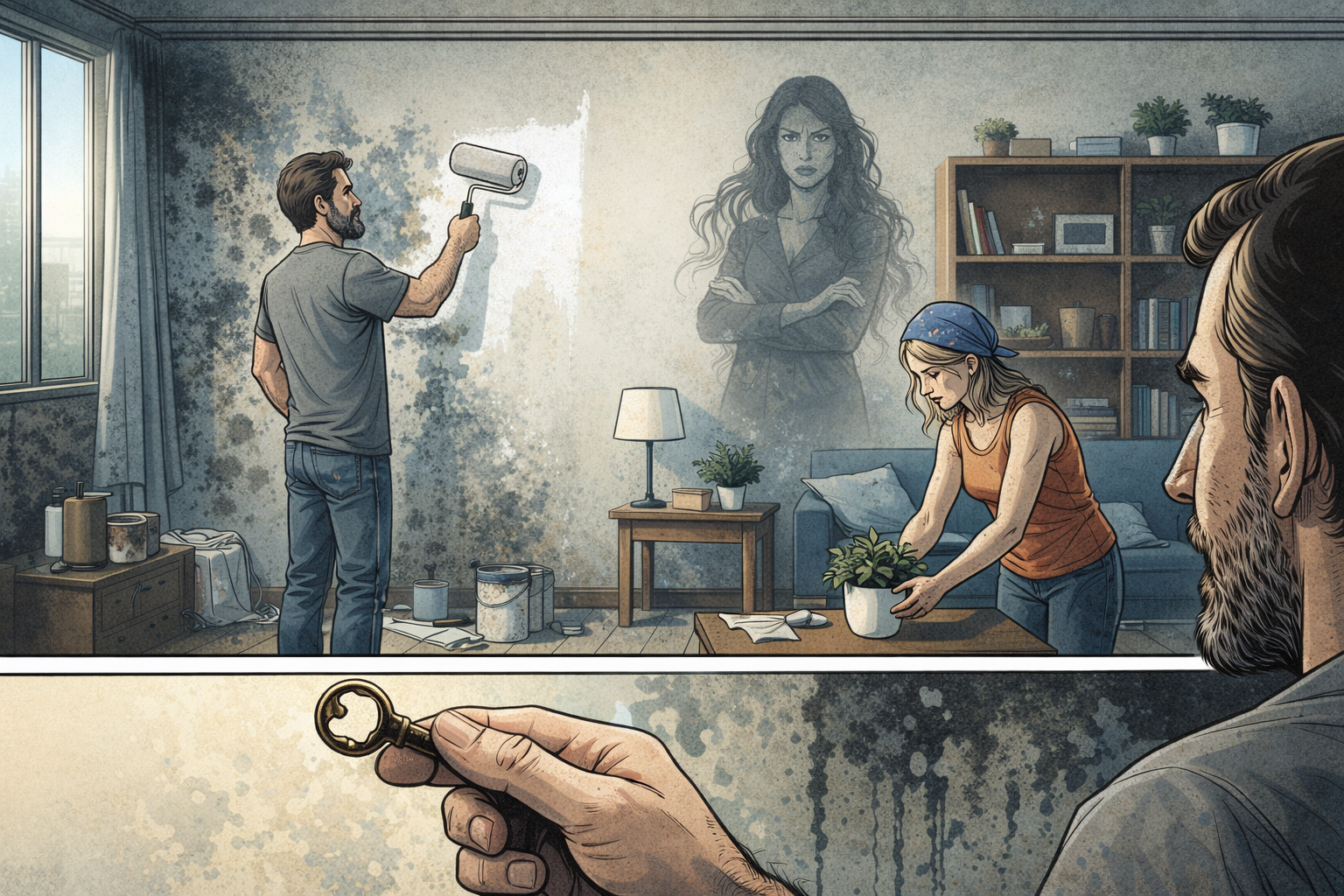 Dans un geste de rupture hautement symbolique, ils décident de transformer intégralement la pièce occupée par l’ancienne locataire : les murs sont repeints, la décoration modifiée, l’énergie nettoyée comme pour purger le lieu de son passé douloureux.